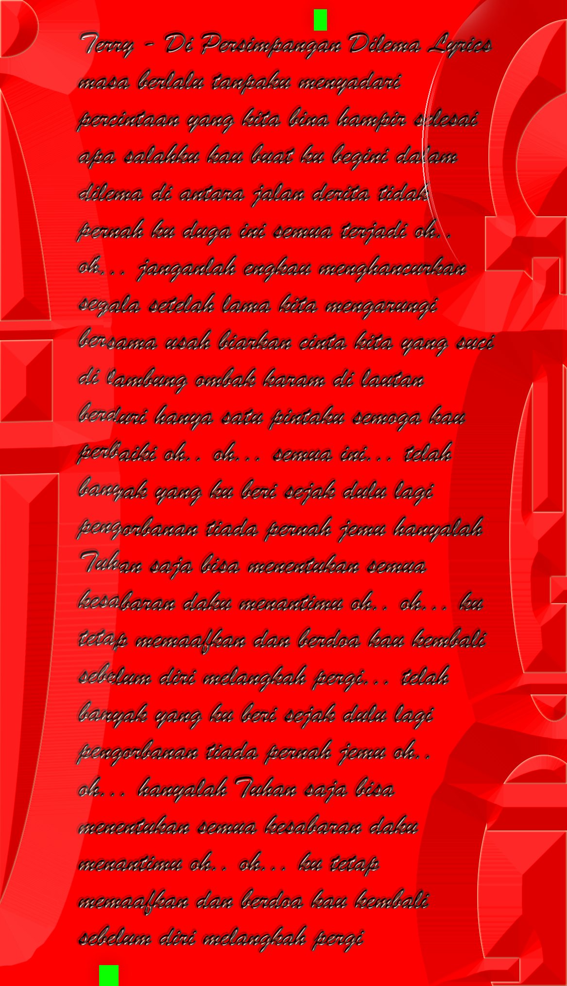 Lirik lagu di persimpangan dilema yang dinyanyikan terry.