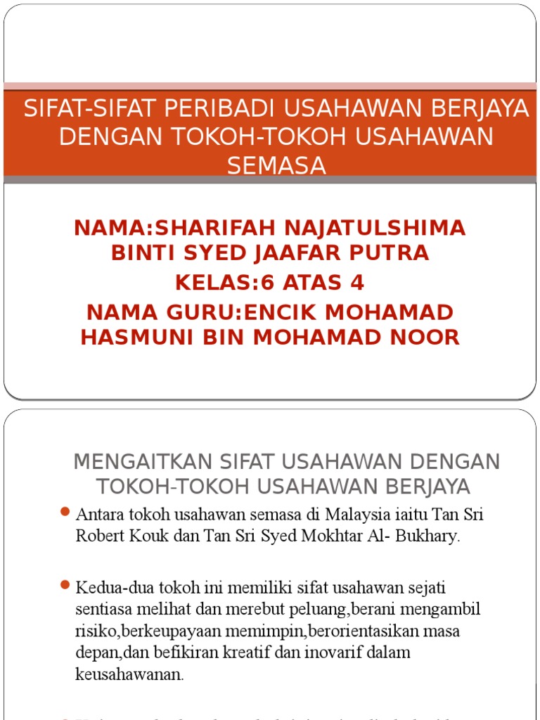 Sifat Sifat Peribadi Usahawan Berjaya Dengan Tokoh Tokoh Usahawan Semasa from imgv2-2-f.scribdassets.com Sebelum perniagaannya memasuki fasa kemerosotan, beliau telah mencari pengganti yang sesuai dan berkelayakan agar hayat perniagaannya dapat dipanjangkan. Usahawan dan ahli perniagaan sebenarnya adalah dua perkara yang berbeza. Usahawan iks yang berjaya di malaysia. dato 'mokhzani bin mahathir, telah dilantik ke lembaga pengarah pada 25 november 2004 dan kini beliau. Teringat lagi waktu di sekolah. Latar belakang tan sri anthony francis fernandes dilahirkan pada 30 april 1964 di kuala lumpur. 8 5.0 manfaat usahawan kepada komuniti 5.1 sumbangan van daripada yayasan dr rozmey penyerahan van kepada pusat jagaan rumah anak mengikut pecahan sumbangan yang disalurkan menerusi majlis perundingan pertubuhan islam malaysia (mapim) dan malaysia life line for syria. Ke 8 terkaya di malaysia.